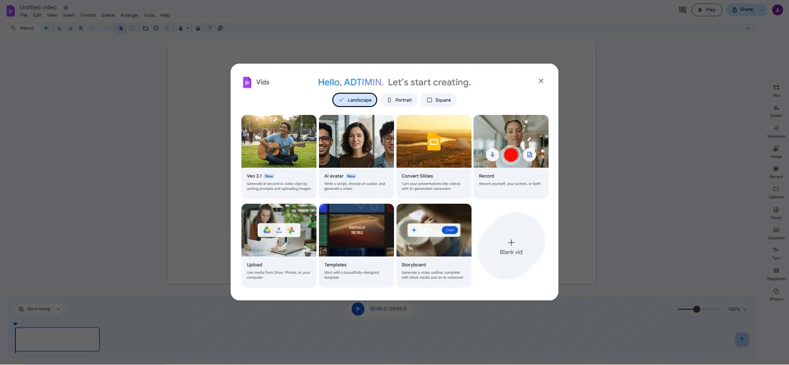 Các bước sau đây sẽ giúp bạn tạo video trong Google Vids đơn giản:
