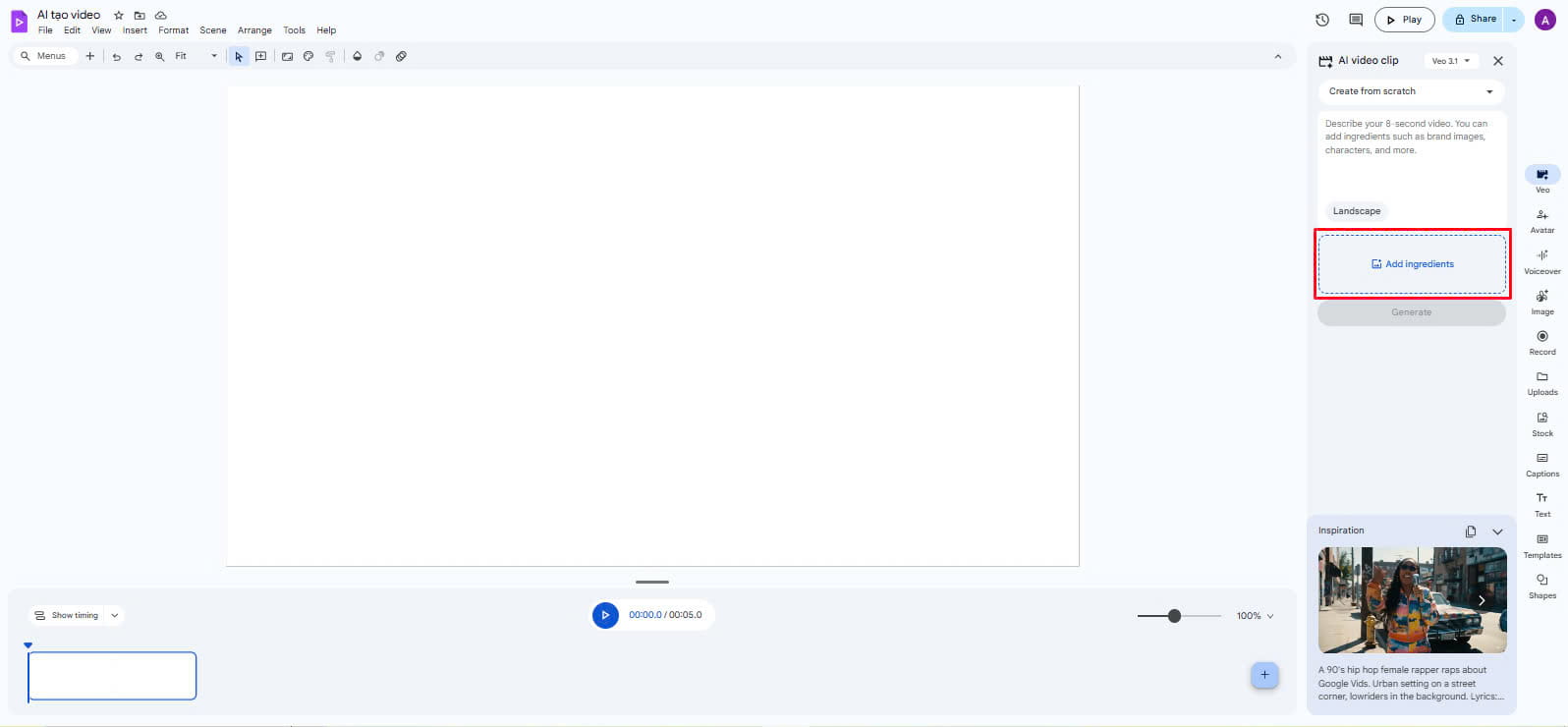AI tạo video bằng Veo 3.1 trong Google Vids