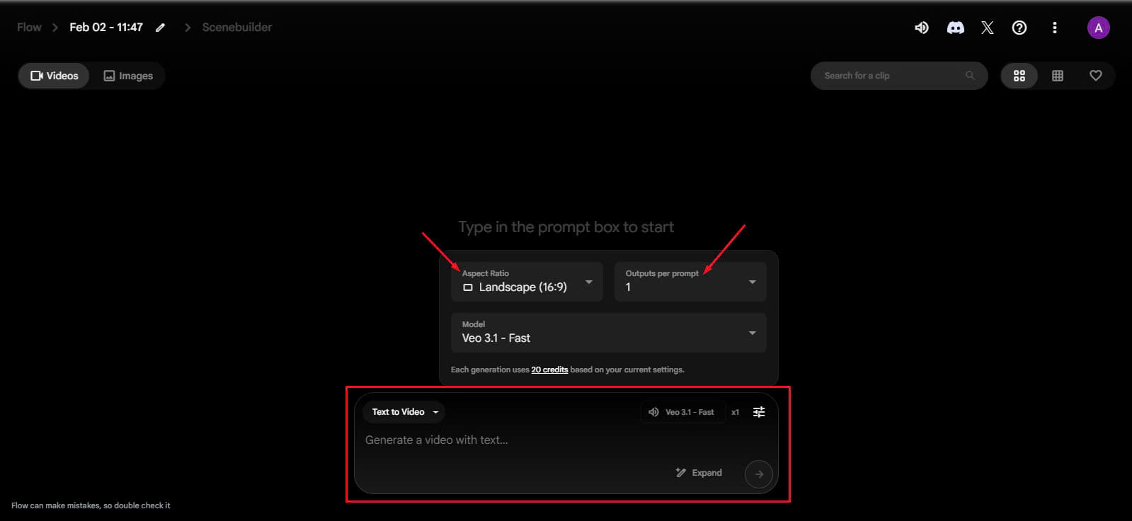 Việc tạo video bằng Flow sẽ tiêu tốn tín dụng ( AI credits )