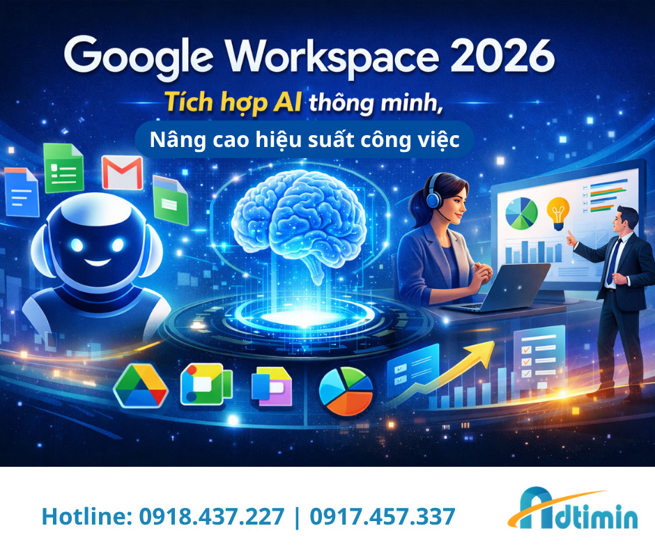 Với nhiều tính năng AI mới được tích hợp sâu rộng vào Google Workspace 2026, đặc biệt là sức mạnh của Gemini, đánh dấu một bước tiến vượt bậc trong cách chúng ta làm việc. Đối với người dùng và doanh nghiệp tại Việt Nam, đây là cơ hội để khai thác tiềm năng to lớn của trí tuệ nhân tạo nhằm nâng cao năng suất, tự động hóa các tác vụ thủ công, thúc đẩy sáng tạo và cải thiện đáng kể hiệu quả giao tiếp cũng như cộng tác. Cần hỗ trợ gì thêm bạn liên hệ Adtimin sớm nhé!