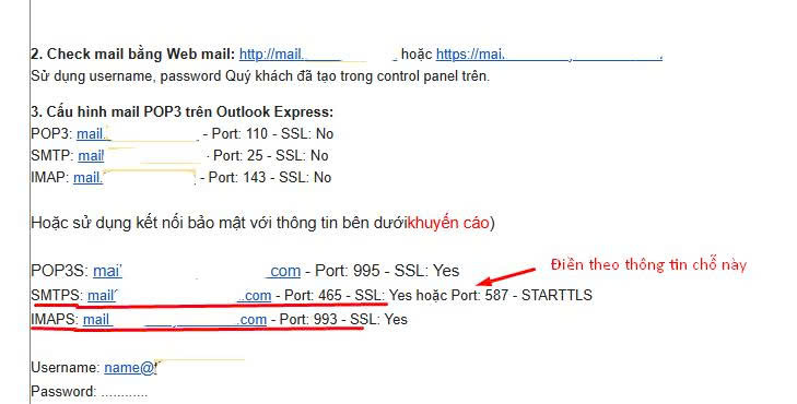 Đảm bảo tài khoản bạn đã tạo và tồn tại trên hệ thống email server hosting.