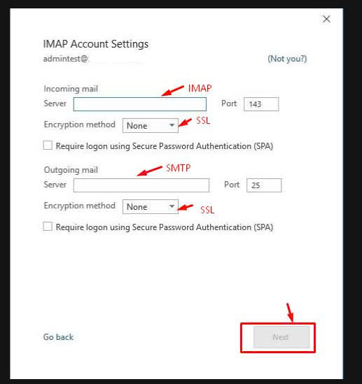 Ở đây chúng tôi đang chọn theo hình thức IMAP và Nhập thông tin máy chủ