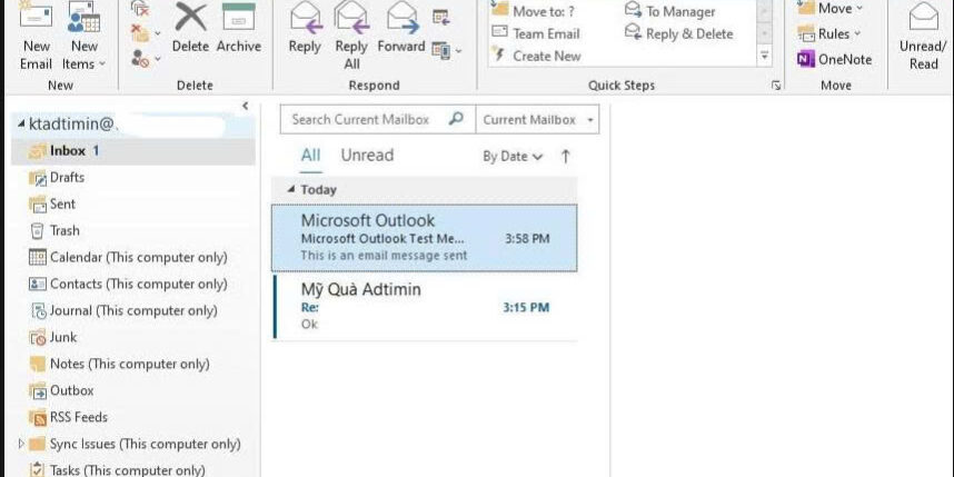 Xong hoàn thành sẽ ra giao diện mail trên outlook và dữ liệu sẽ tự đồng bộ sang hộp thư outlook cho các bạn