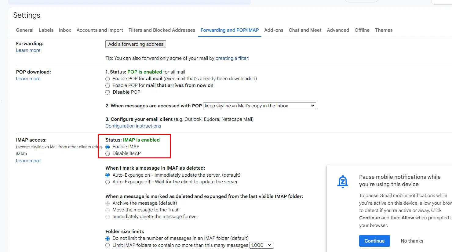 Tiếp theo bạn chọn IMAP để chuyển dữ liệu email từ google workspace sang Microsoft 365