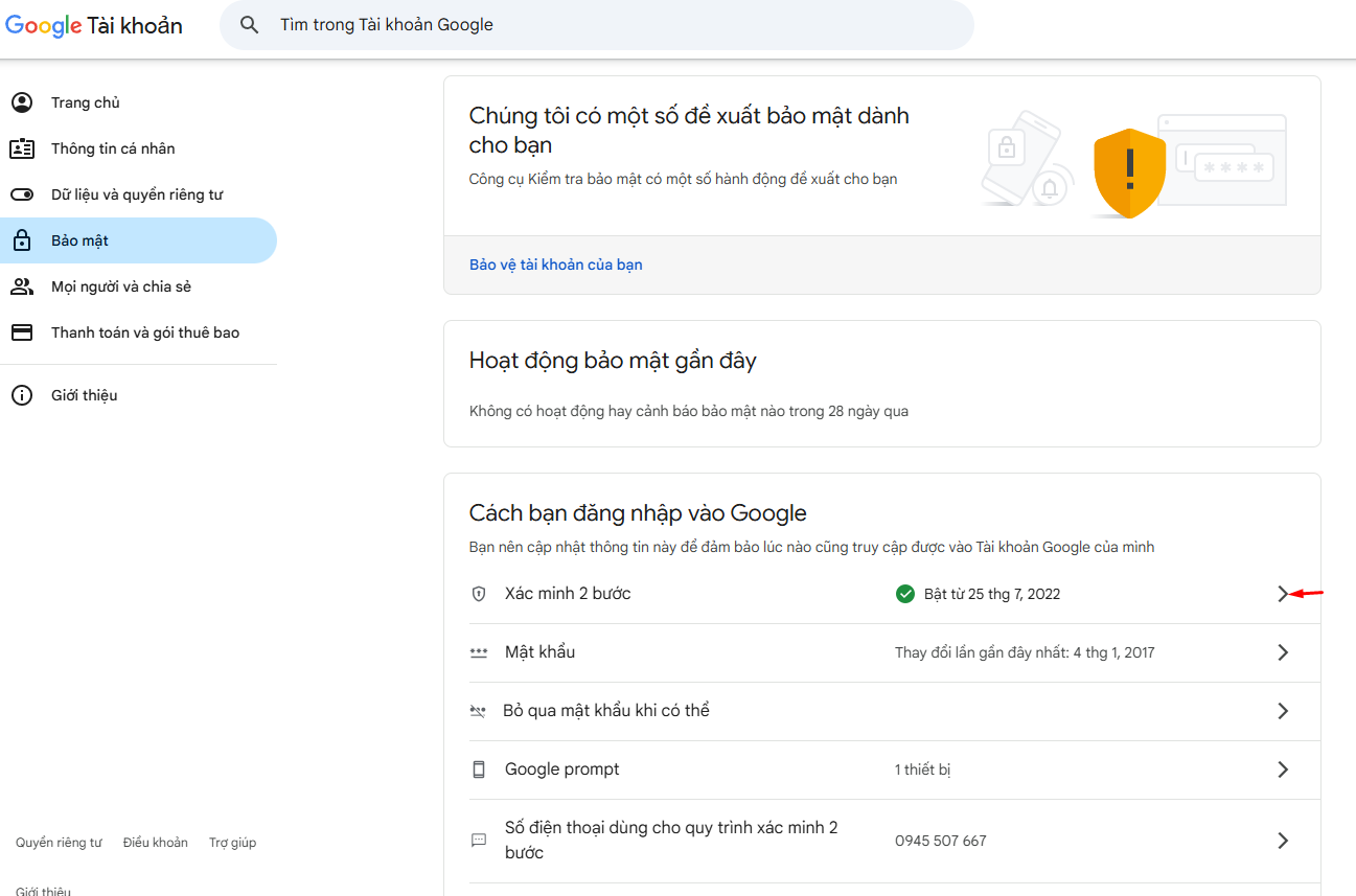Sau khi bạn đã bật xác mình 2 bước thì tiếp theo hãy