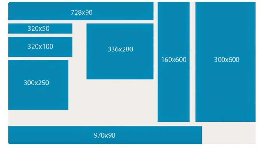 Mỗi banner có một kích thước hợp lý để được đặt trên các vị trí khác nhau của Website. Google Adsense đã xếp hạng những kích thước sử dụng nhiều nhất bao gồm những kích thước sau: